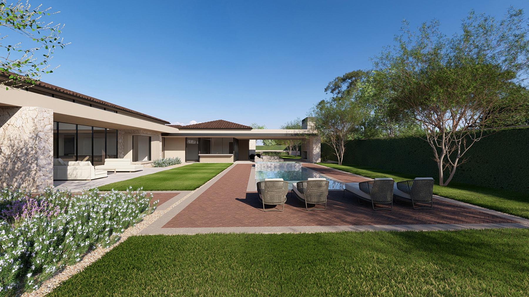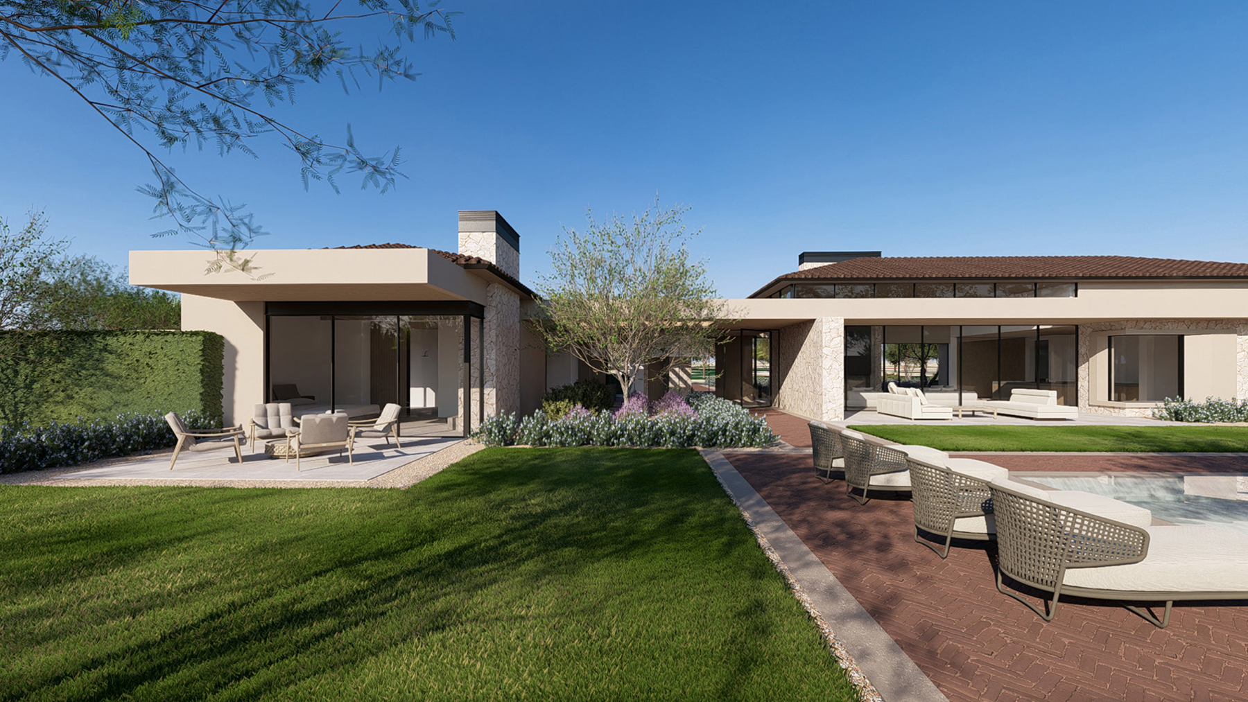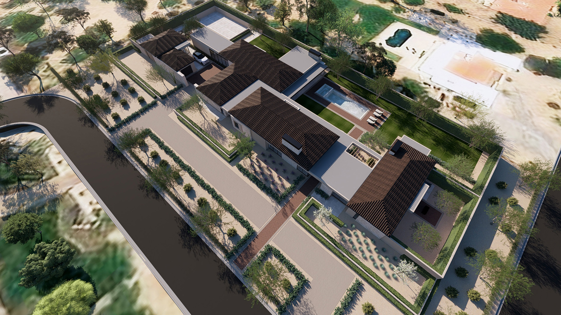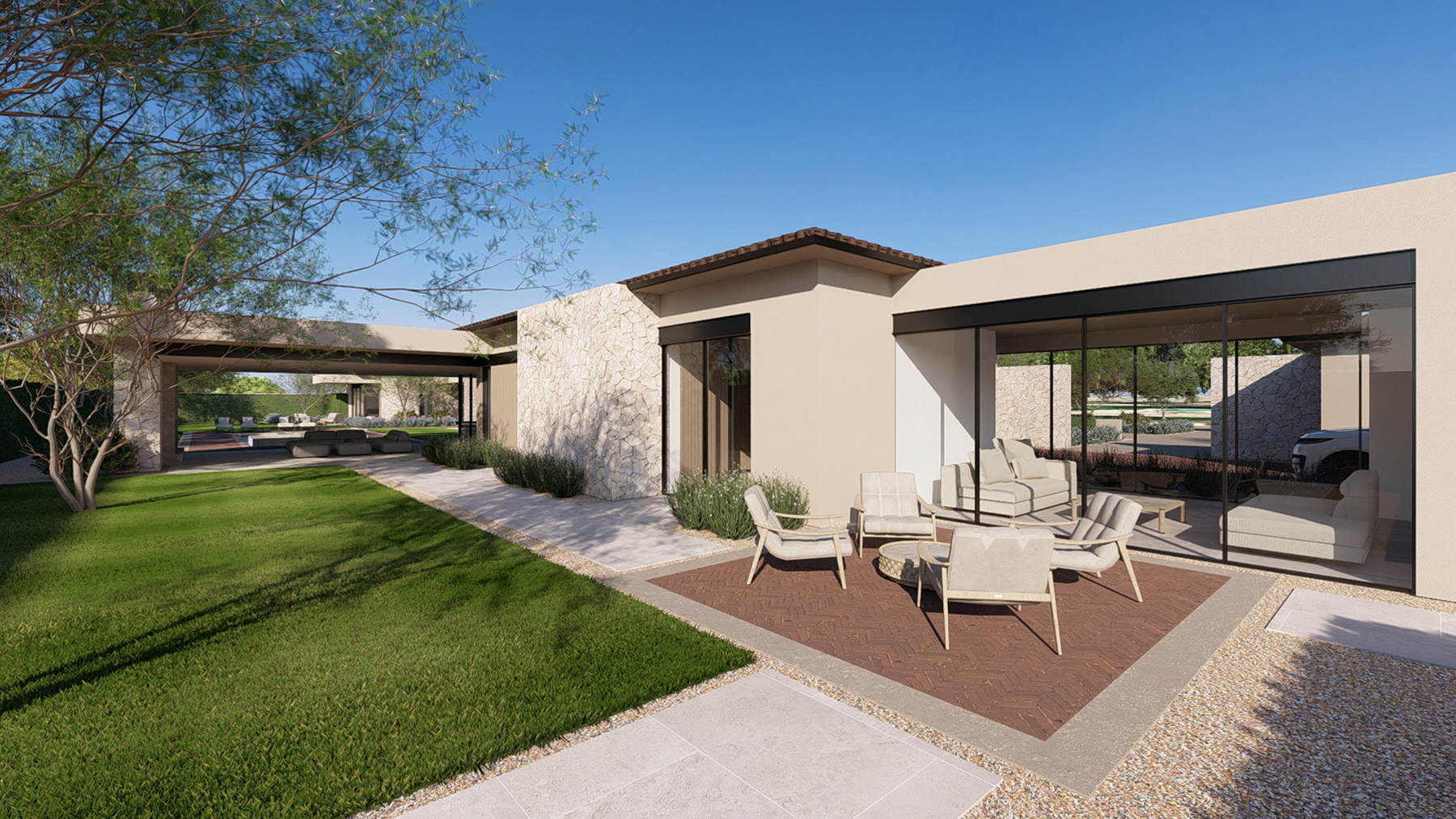 This refined contemporary residence is designed for elevated living and effortless entertaining, featuring an open-concept main living area with strong indoor-outdoor flow. The gourmet kitchen is anchored by professional-grade appliances, an oversized waterfall-edge island, a full Butler’s Kitchen, walk-in pantry, and temperature-controlled wine room, creating an ideal setting for hosting and everyday luxury. The expansive owner’s suite offers a spa-inspired bath, dual walk-in closets, and a private terrace or courtyard retreat. Dedicated spaces including a private home office, media room, and game room or lounge with wet bar enhance the home’s livability, while smart-home technology, motorized shades, and energy-efficient systems ensure modern comfort. Outdoor living is brought to life through a resort-style backyard complete with a pool and spa, outdoor kitchen, fireplace, shower, sport court, fire pits, and professionally designed landscaping. A livable casita and a three-car garage with EV charging complete this thoughtfully designed home, offering a seamless blend of luxury, functionality, and lifestyle-driven design.
